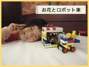 ![]() ガーデニングショウで見たお庭と、 そのお世話をするロボット車を作りました。 |